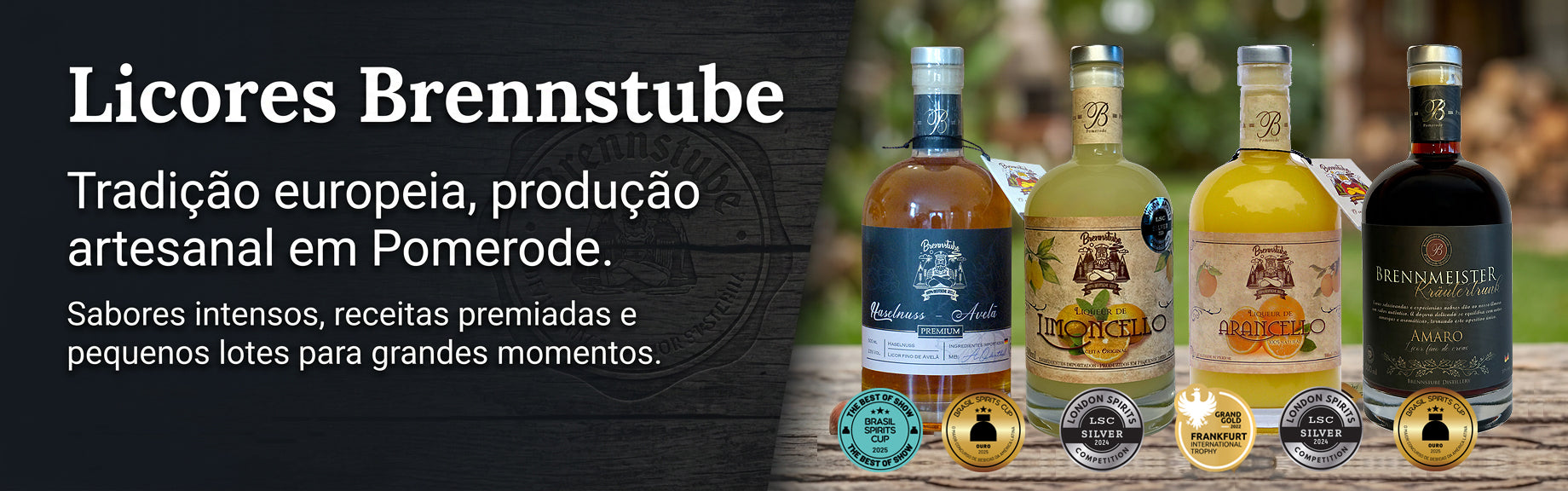 Receitas inspiradas em tradições centenárias, interpretadas com ingredientes naturais e produção artesanal em Pomerode. Licores que vão do cítrico intenso do Limoncello e Arancello ao aconchego de avelã, amêndoas e baunilha, sempre com sabores marcantes e texturas envolventes.